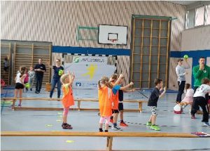 Gleich zu Beginn des neuen Schuljahres fand am 20. Oktober in der Bruckenackerschule wieder ein ganz besonderes Ereignis statt: Der Handballaktionstag 2017, ein landesweites Projekt. Ermöglicht wurde dies vom ortsansässigen Handballverein mit Herrn Lippke. „Sport Spaß und Spiel“ hieß es dann den ganzen Tag für 80 Mädchen und Jungen der 2.Klasse. Die Kinder lernten, unter der Leitung von Trainern und vielen freiwilligen Helfern an 8 Stationen, viele Facetten des Handballtrainings kennen. Neugierig und interessiert waren die Kinder bereits bei der Begrüßung und höchst motiviert an den Stationen mit den verschiedensten Koordinationsübungen. Die Stationen mit dem Handball stärkten die Freude am Sport und an der Bewegung. Die 9- 10 köpfigen Teams pro Station entwickelte den notwendigen Teamgeist und traten stets diszipliniert auf. Selbstverständlich bekamen die Kinder zum Abschluss eines solchen Tages eine persönliche Urkunde, ein kleines Handballbuch und eine Medaille überreicht.