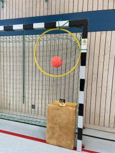 Bei den Stationen haben wir verschiedene Handballtechniken gelernt, zum Beispiel werfen, auffangen und prellen.