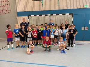 Wir 3. Klässler durften mit dem Handball-Bundesligaspieler des TVB Stuttgart Nico Bacani ein Handball-Training durchführen.