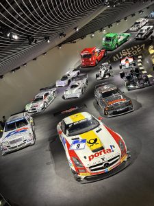 Als erstes hatten wir eine Einführung in der wir einen kleinen Film angeschaut haben. In dem Film ging es um die beiden Erfinder Carl Benz und Gottlieb Daimler. Danach sind wir mit einer Zeitkapsel (Aufzug) in den höchsten Stock (M1) gefahren. Als wir oben ankamen sahen wir ein weißes ausgestopftes Pferd. Jetzt wurden wir in Gruppen aufgeteilt und bekamen Heftchen mit Aufgaben und sahen uns gleich in der M1 interessiert um. In M2 und M3 gab es überall alte Autos. Richtig schöne waren dabei z.B. der „Flügeltürer“. Je tiefer wir gingen, desto moderner wurden die Autos. In der M7 gab es sogar Rennautos, die „Silberpfeile“ von alt bis neu. Der Ausflug hat uns sehr gefallen.